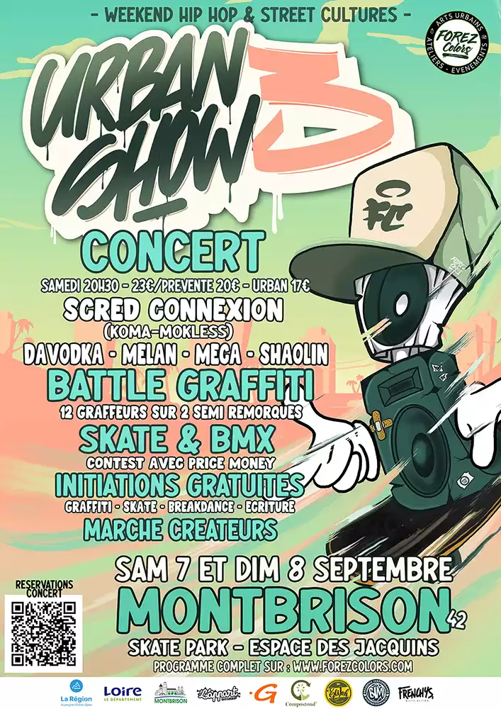 L’Urban Show est un festival célébrant la street culture sous toutes ses formes! Créé en 2022 par le collectif et situé à Montbrison dans la Loire (à 30 min de St Etienne), c’est un week end dédié au Hip Hop et aux cultures urbaines avec concert, battle graffiti, contest de skate et BMX, initiations gratuites, marché créateurs… 2 jours d’animations et de partage culturel au cœur de notre cher Forez.